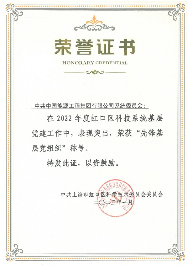 中國能源工程集團(tuán)系統(tǒng)黨委榮獲2022年度“先鋒基層黨組織”稱號