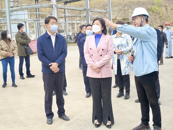 徐曉霞聽取了中機茂名總經理羅濤關于茂名市循環經濟示范中心項目的建設和生產經營情況匯報,并實地調研了生產經營情況,對中國能源工程集團及中機茂名一貫高度重視生態文明建設和生態環境保護工作、持續鞏固提高環保防治、實現高標準生產的工作成效表示肯定。